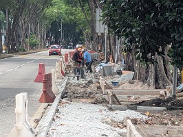 ちなみに、海外の歩道ってば日本みたいに綺麗に仕上がってないですよね(歩道に限らず、インフラ全般)。思うに、作業者の職人魂と言うか、完成度の目指すレベルが全然違うんでしょうね。特に、マレーシアのような、海外からの労働者に頼る場合には、職人魂や完成度なんか期待できずで、とりあえず形にしようというレベルなんじゃないかな。ゆえに、端っこの方とか、一手間かける必要がある場所は、ガタガタにして仕上がりイマイチになってしまうのかなぁと…。持論です(^^ゞ |