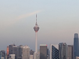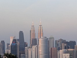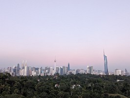 訪れた丘は、Bukit Tunku Photo Viewと言うところで、地元民もわらわらと集う夕日スポットなのでした(一部はどでかいカメラを持参)。あいにくと、夕日の時間帯は既に過ぎ去っていたのだけれど、綺麗なKLの街並みと、3つの象徴的な建物に、夕焼けを見ることができました。『あそこにある建物は、我々のオフィスだね』なんて、職場のビルなんかも見えるのでした。そんなこんなで、短い滞在時間ながら、KLの街並みを堪能しましたよ。そのまま居ると、KLの夜景なんかも見られる場所なのでした(もち、夜景前に退散)。 |