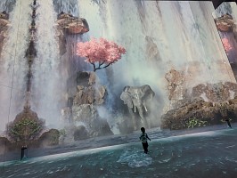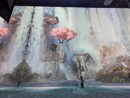 | Zone 4の説明 Stand before a majestic waterfall and immerse yourself in the graceful yet thunderous sound of cascading water. Watch in wonder as a mighty elephant awaits your arrival, ready to grace you with its presence. |