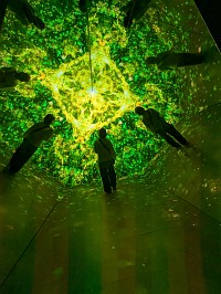 | Zone 6の説明 Enter a three-dimensional spatial sanctum that brings matter to life through the power of light. Discover the endless possibilities of media art and be transported to an otherworldly experience. |