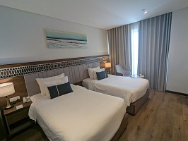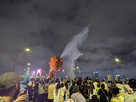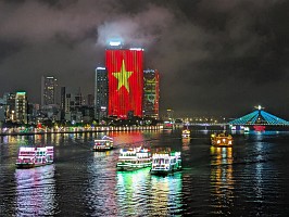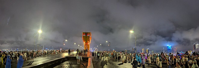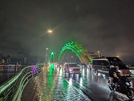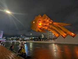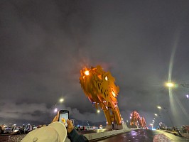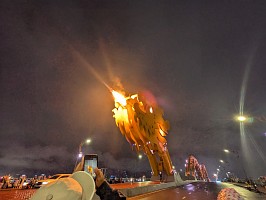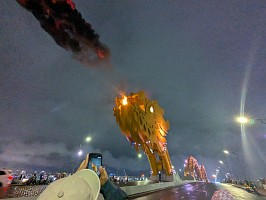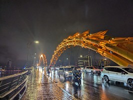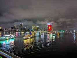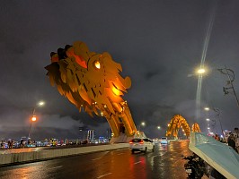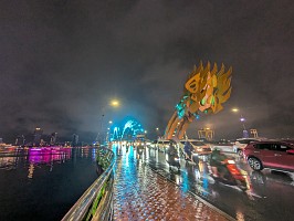| 空港から、さくっとホテルへとGrabで移動してチェックイン。部屋は上位階の良いところでした(ラッキー)。そこから徒歩で移動してお昼を済ませて、レストランからGrabでホイアンへと!締めは、ドラゴンブリッジにて炎と水のショーを鑑賞です。 |