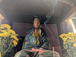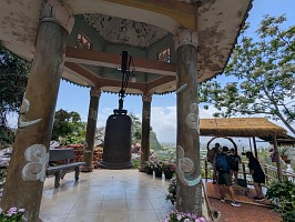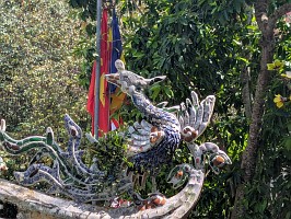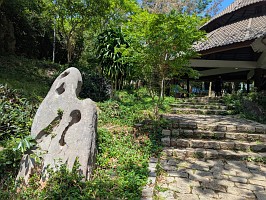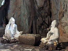 | 上記の写真をAIに聞いてみたところ…。(写真を読み込んで、解説とは、AI凄いわ~!) ----- この2人の人物は、囲碁ではなく中国将棋(シャンチー)を指している仙人(または神様)です。ベトナムには、この情景にまつわる非常に有名な逸話があります。 盤棋(バンコー)の伝説:昔々、天界から2人の仙人がこの美しい景色に惹かれて地上に降りてきました。彼らは岩の上で将棋を指し始めましたが、実力が互角だったため、数日経っても決着がつきませんでした。対局の最中、近くの浜辺(現在のティエンサ・ビーチ)に美しい妖精たちが舞い降りて水浴びを始めました。その笑い声や美しさに片方の仙人が一瞬だけ気を取られてしまい、悪手を打って負けてしまいました。勝った仙人は意気揚々と天に帰りましたが、負けた仙人(一説には帝釈天:De Thichとされる)は、自分のミスが悔しくて、今でもその場所で次の一手を考え続けていると言われています。 |