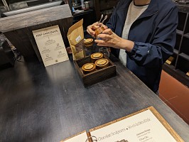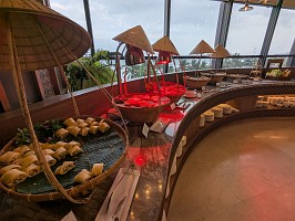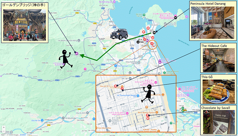 本日は、超有名観光スポットのゴールデンブリッジ(神の手)へと行ったのだけれど、心配した通り、山の上にあるテーマパークは雨となっていて、ガスっている状況でもあり、そして寒くて寒くて散々なのでした。おかげさまで、青空をバックにした空中回廊かのようなゴールデンブリッジ(神の手)見ることはできませんでしたよ。テーマパークには、他にも見るところがあったようだけれども、事前リサーチ不足にして、寒さでやられてしまったこともあり、早々に退散するのでした。久しぶりに晴男パワーが効果を発揮しなかったのだけれども、こんなこともあるでしょう。 晩御飯の前には、教えてもらったチョコレート屋さんに訪れることができたし、晩御飯で訪れたThia Goは期待通り、いや、期待以上に美味しくて大満足でしたよ。終わり良ければ総て良し、美味しい食事のおかげで本日も楽しい1日でした。 |