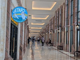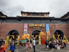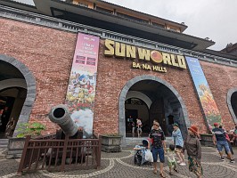 | ベトナム・ダナン郊外の山頂にある「サンワールド・バーナーヒルズ」は、巨大な手が橋を支える「ゴールデンブリッジ」(神の手)で有名な人気観光地です。標高約1,500mに位置し、世界最長級のロープウェイ、フランス風の街並み、遊園地、庭園が広がる、涼しい高原リゾートです。 |