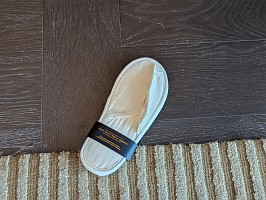 | 満腹&歩いて汗もかいたので、シャワーを浴びてお風呂に入り、寝るのでした。置いてあったタオルは、毛布かと思う程の大きさで、分厚さもあって結構な重さでした(もう少し手頃サイズで、軽量の方が嬉しいかなぁ)。そして、ガウンも同様に分厚くて、やや重い感じでした。ガウンは、インターコンチネンタルダナンのものが、最高だったな~。 |