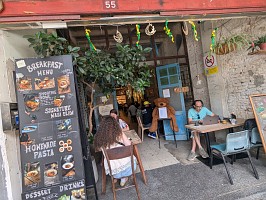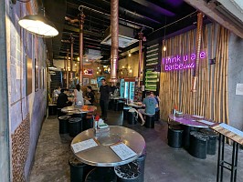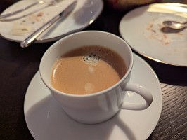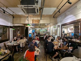 | それを聞いても、「え?あれ?」と状況理解できないのでした。すると、トリッシュが『誕生日だから、静かな席をお願いしたんだよね』と言うじゃありませんか。思わず、口からタピオカプリンが飛び出てきそうになりました。と言うのも、写真のとおりで大衆居酒屋と言うか、個室なんて無い長方形の敷地にテーブルと椅子を並べただけのレストラン。「どこに静かな席があるのよ!」と。 『店長も、静かな場所って…、どこにしようかな』と迷ったに違いないね(笑) と会話するのでした。店長が思案した結果が、一番奥の丸テーブル席だったのね。多分、お客さんは他の席に案内されて、席がなくなった時点でお客さんが案内されるテーブルという計らいがあったんでしょうね。しかし、大衆居酒屋と言っては失礼だけれども、誕生日で使うようなお店っぽくもなく…、なのでした(店員も同じことを思っていたかなぁ、なんて会話もするのでした)。ちなみに、誕生日スイーツのタピオカプリンは、程良い甘さでとても美味しかった!こちらのお店を訪問の際には、是非とも頼みたい一品なのでした。 |