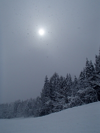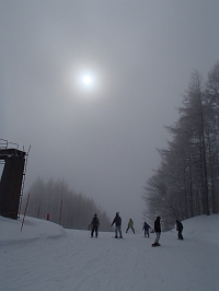 気持ち良く撮影していると、一緒したKさんの靴が崩壊というトラブル発生。板をつけることもできなくなって、スキー場を駆け下りる!その様は、まるでウルトラクイズの罰ゲームであった(古い)。もしくは、モンハンで走る姿。ザッザッザッと走る姿は勇ましかった。(笑)