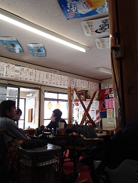 お店入った時、座敷でくつろいでいたオッチャンは、食後にくつろいでいるかと思ったら、食事待ちに疲れて横になっていたのであった…。 あちこちの席では待ちくたびれている他の客。既に我々のオーダーから40分が過ぎていた…(と言うことは何分待ち?)。