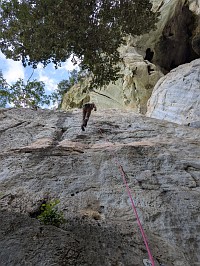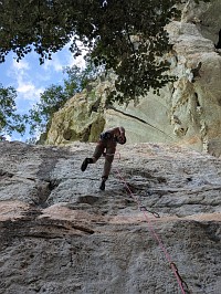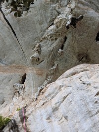 Windowにトライすることができました(トライと言うか、触れる程度)。でも、気になっていたルートに触れることができたから、満足です。いや、できるのならば、撮影者を立たせて、ベストな場所から写真を撮ってほしかった!ネットでは、ビレーヤー以外に撮影者を立たせて、ベストなショットを撮っている写真がありますよ。 ちなみに、Mr. Qは強者クライマーゆえなのか、ちょっと風変わりな人柄で、写真撮影はほとんど興味がないような感じなのでした。なので、今回のクライミング遠征中に、写真を撮っているところをほどんど見かけることなく。ついでに言うと、難関ルートに挑む際、鼻歌を歌い始めるんですよね。もう、心からクライミングを愛していて、楽しんでいる様子が伺えましたよ。旅行者なのに、ロープとギアをフルで揃えているし。←これを見て、Ms. Mが、ギア持参の旅行者は珍しいよねと(本当にそうだよ)。 |