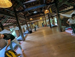 | とりあえず、雨も止んだHuu Lungへと到着したのでした。明日以降、雨予報を覆して、登ることができる日がやってくるのか!? 自分の晴れ男パワーが、試される時が来ましたよ。 ちなみに、宿には飲料販売はあるけれど、スナック菓子の販売はなく、事前に「必要な人は、各自スナックを持って行くように」と指示がありました。カフェもほとんどなく、まさにド田舎な感じです。そして、この後毎晩21:30過ぎには消灯となって、合宿かいな!という日々が続くのでした。 |