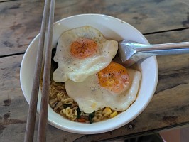 | この時は、席が離れていて話に参加していなかったのだけれど、聞くところによるとVietClimbの関係者とのこと。Huu Lungのあちこち岩場を開拓してくれる人たちでしたか。SNSを見てみると、確かに登場していて、平山ユージとも登っていたのでした。翌朝に聞いてみたら、平山ユージと一緒に東南アジアの開拓を勧めているんだとか。次はフィリピンに行って、開拓する予定と教えてくれましたよ。ほえぇ~、そうでしたか。 |