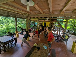| 本日の様子を振り返ってみて、2ルートしかロープセットしていない事に気付いたのでした。やっぱり、気温と湿度が厳しい環境だったよな~としみじみ思うのでした。疲れ果てた自分は、最終形態としてパンツ一丁になってしまったし…(晩御飯でも指摘されましたよ)。気温と湿度に加えて、日々の睡眠不足もたたっているしで、なかなかにハードなのでした。今にして思うと、良くもまぁ脱水症状にならなかったなぁと。とりあえず、本日も、誰にも怪我無く1日を楽しく終えることができて、素晴らしい1日となったのでした。明日はどこに行くのかな? |