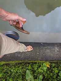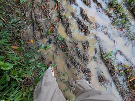 | この後、更なるアクシデントが…。Uターンして帰る訳なんだけれども、舗装されていることと、少々道幅が広いこともあって、横着してバイクに乗って切り返しを試みてしまったのです(いつもは降りて、手押しでするのだけれど)。そしたらバランスを崩してしまって、その影響もあってアクセル回って、水田にバイクごと突っ込んでしまいましたよ。 バイクに倒されてバランスも悪く、一人では立ち直れない状態に…。それを見たキャプテンYが、すぐさま片手でバイクを掴んで、引き揚げてくれたのでした。片手で引き上げる姿が頼もしかった…。 その光景が瞼に焼き付いて、この日は何度も思い出し笑いしちゃいましたよ。しかし、メンバーの多くがバイクで走り始めていなくなった状態で、残っていた事と、力強く引き上げてくれたキャプテンYに感謝ですよ。 |