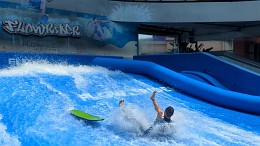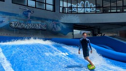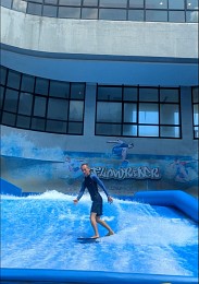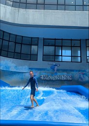 | そんなこんな、1時間のサーフィンを終えました。転ぶことが少なったおかげで、4人ほどのエントリーでも、結構十分に滑ることができるようになりました。後は、練習を積んで、板に馴染むことでしょうか。小ジャンプを繰り返したりして、多少のバランス崩れは気にならないようなレベルにしたいなと。そうすれば、スイッチしたり、もう少し高くジャンプすることもできるかな。いずれは、180やスイッチなんかも、やりたいな~。 |