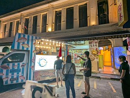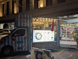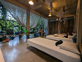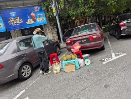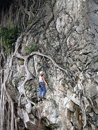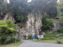 | 驚き、混乱の昼食を終えて、岩場にやって来ました。2年前にも来たところ 、「Gunung Lang」です。前回は、大渋滞で到着遅れて、1本しか登ってなかったからな~。あんまり思い出はないけれど…。 |