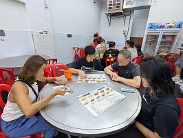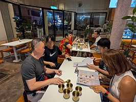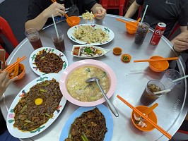 | 本日は、晴男のはずなのに、通り雨とはいえ雨が降って、クライミングが終了してしまいましたよ。む~ん、悔しい!なのでした。そして、シンガポール組の大食漢ぶりには、本当驚かされました。これが、毎晩繰り広げられるのでした(もう、目の前で食べないでくれ~状態)。 |