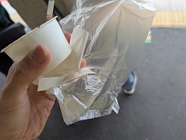 | 紙とビニール袋も一緒にくれて、ゆりかごから墓場まで、のような一貫サービスでした。残念だったなと思ったのは、オーダーしたチョコレートが濃厚で、ジェラート自体の風味が楽しめなかったかなという事(ジェラート事態の風味ってあるのかな)。パンの場合、ソーセージとか具材の風味が強調されてしまい、パン自体の風味をほとんど味わえないという事があるゆえに。まぁ、美味しく頂いたので、問題はなのだけれど。ちなみに、ジェラートという事で、阿佐ヶ谷のシンチェリータ(Gelateria