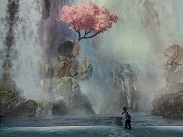 | Zone 4の説明 Stand before a majestic waterfall and immerse yourself in the graceful yet thunderous sound of cascading water. Watch in wonder as a mighty elephant awaits your arrival, ready to grace you with its presence. |