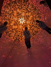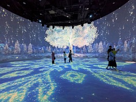 | Zone 6の説明 Enter a three-dimensional spatial sanctum that brings matter to life through the power of light. Discover the endless possibilities of media art and be transported to an otherworldly experience. |
